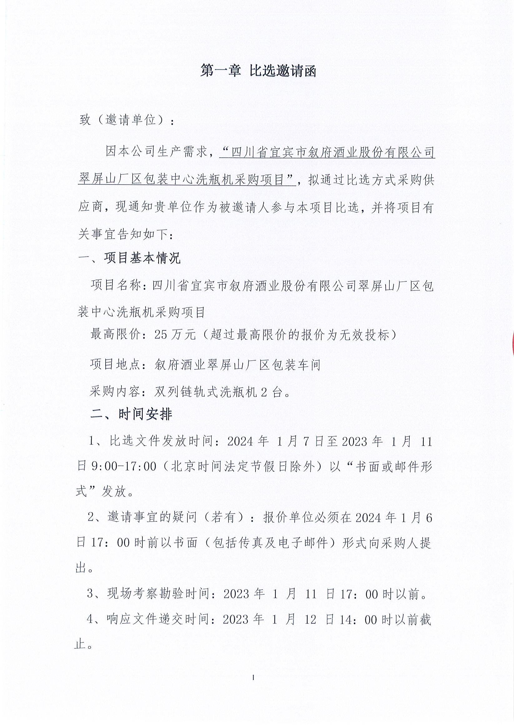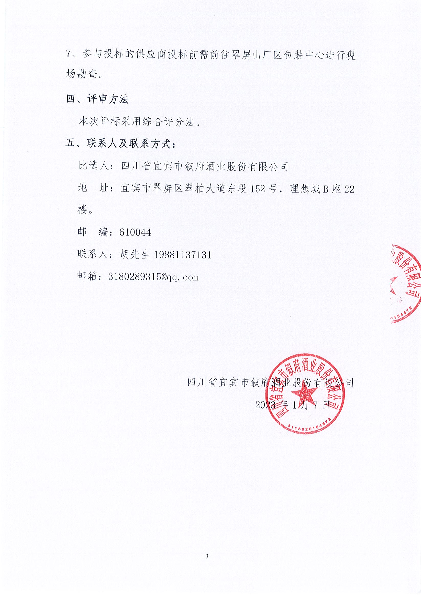 四川省宜賓市敘府酒業(yè)股份有限公司 2024年春季糖酒會(成都泰合國際大飯店)場地租賃公示公告