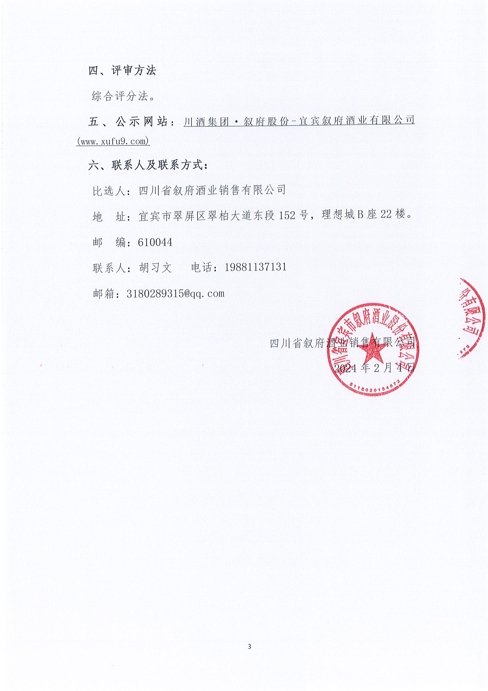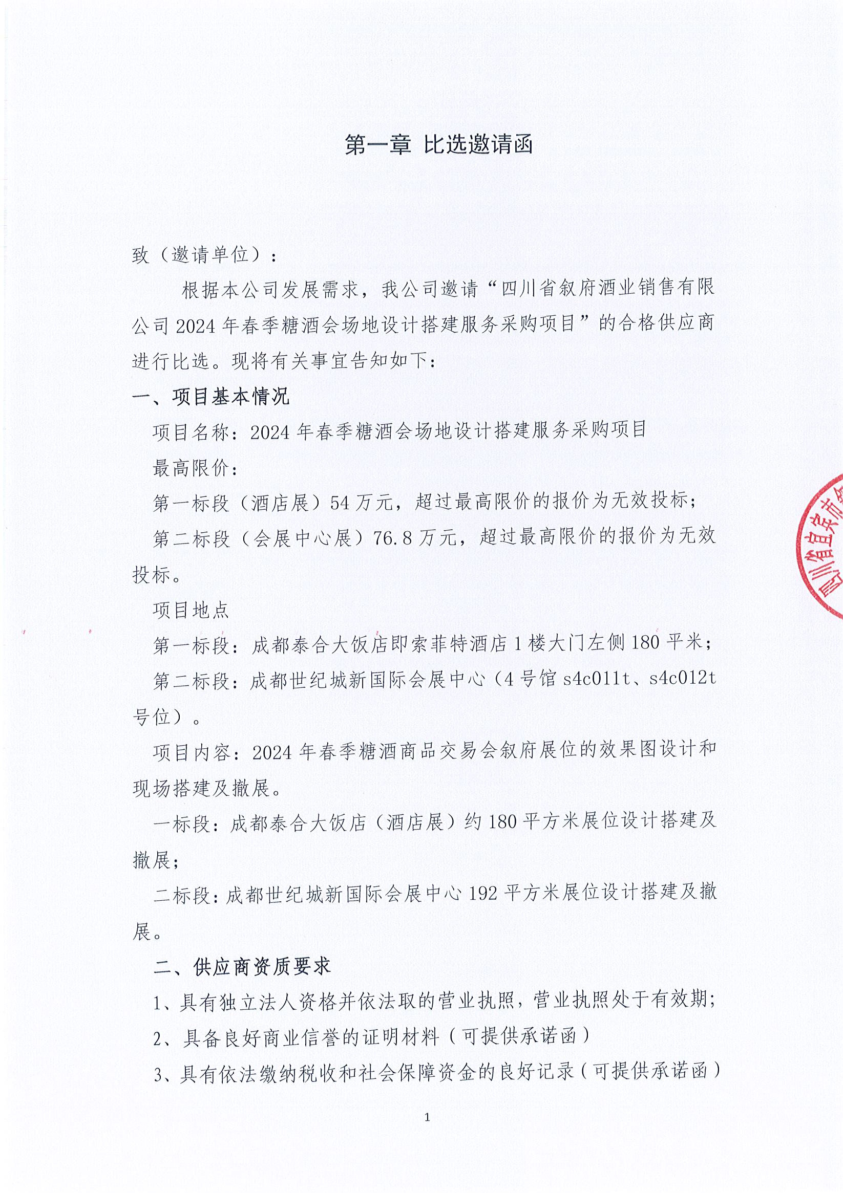 四川省宜賓市敘府酒業(yè)股份有限公司 2024年春季糖酒會(會展中心場地展)場地租賃中標結(jié)果公示公告