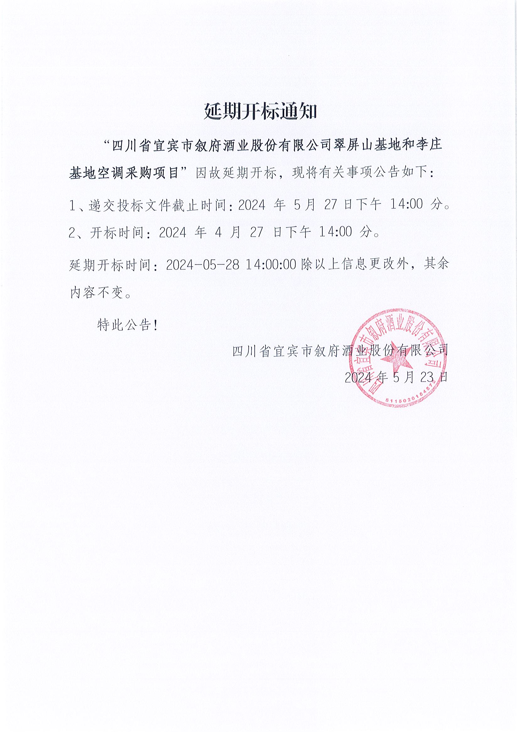 四川省宜賓市敘府酒業(yè)股份有限公司翠屏山基地和李莊基地空調(diào)采購(gòu)項(xiàng)目比選結(jié)果公示