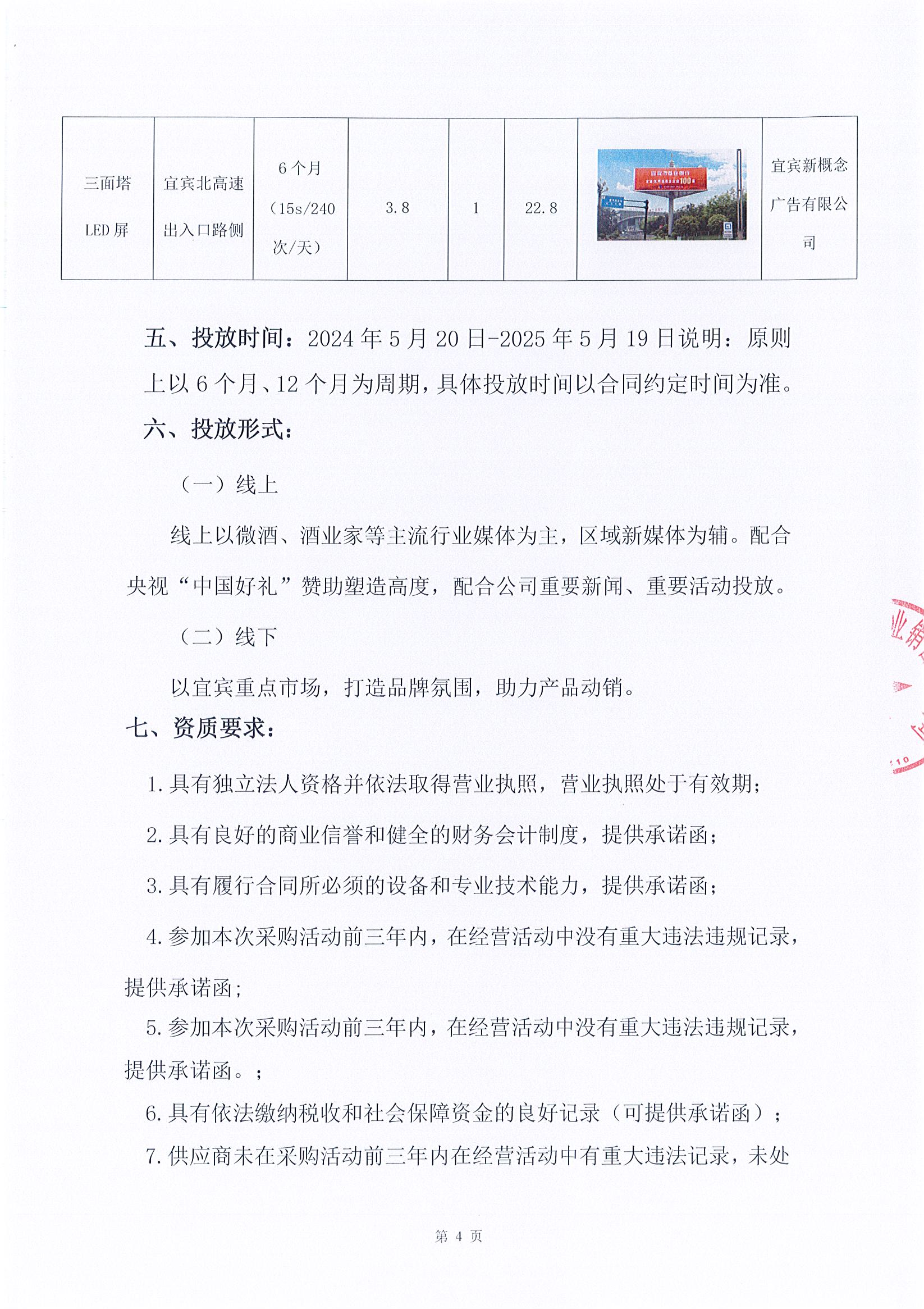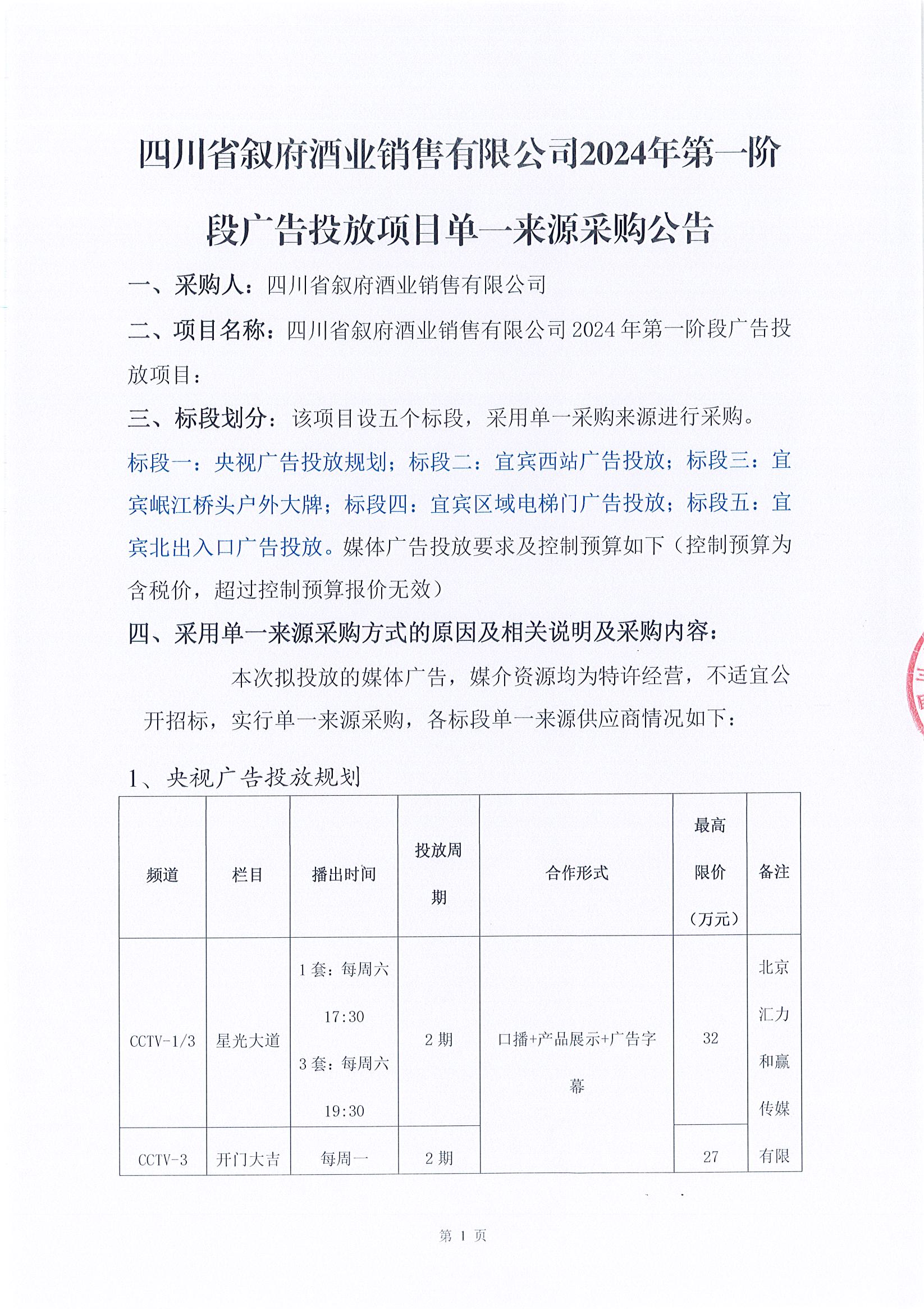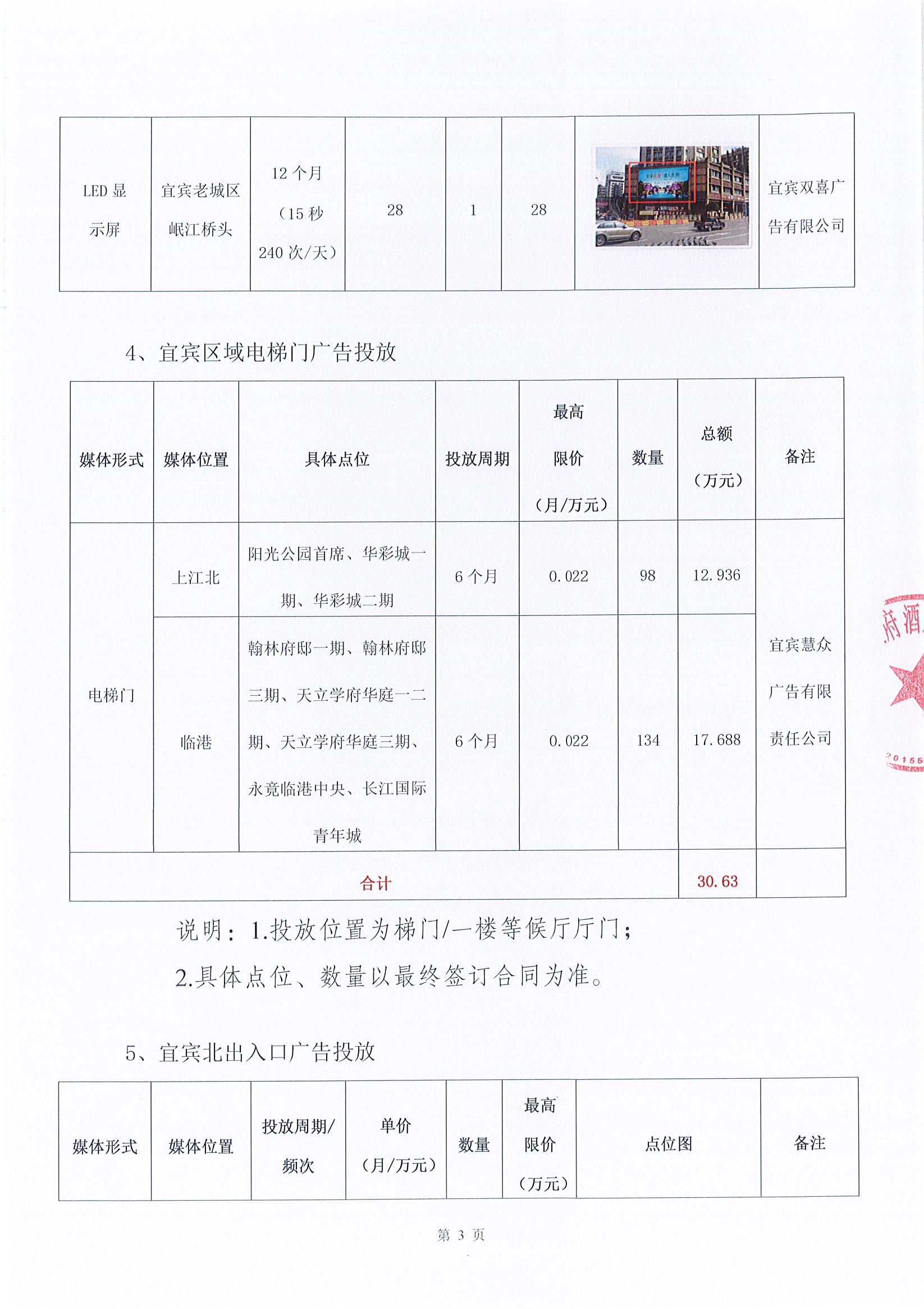 四川省敘府酒業(yè)銷(xiāo)售有限公司高速跨線(xiàn)橋/宜賓區(qū)域道閘廣告投放采購(gòu)項(xiàng)目公開(kāi)比選公示公告
