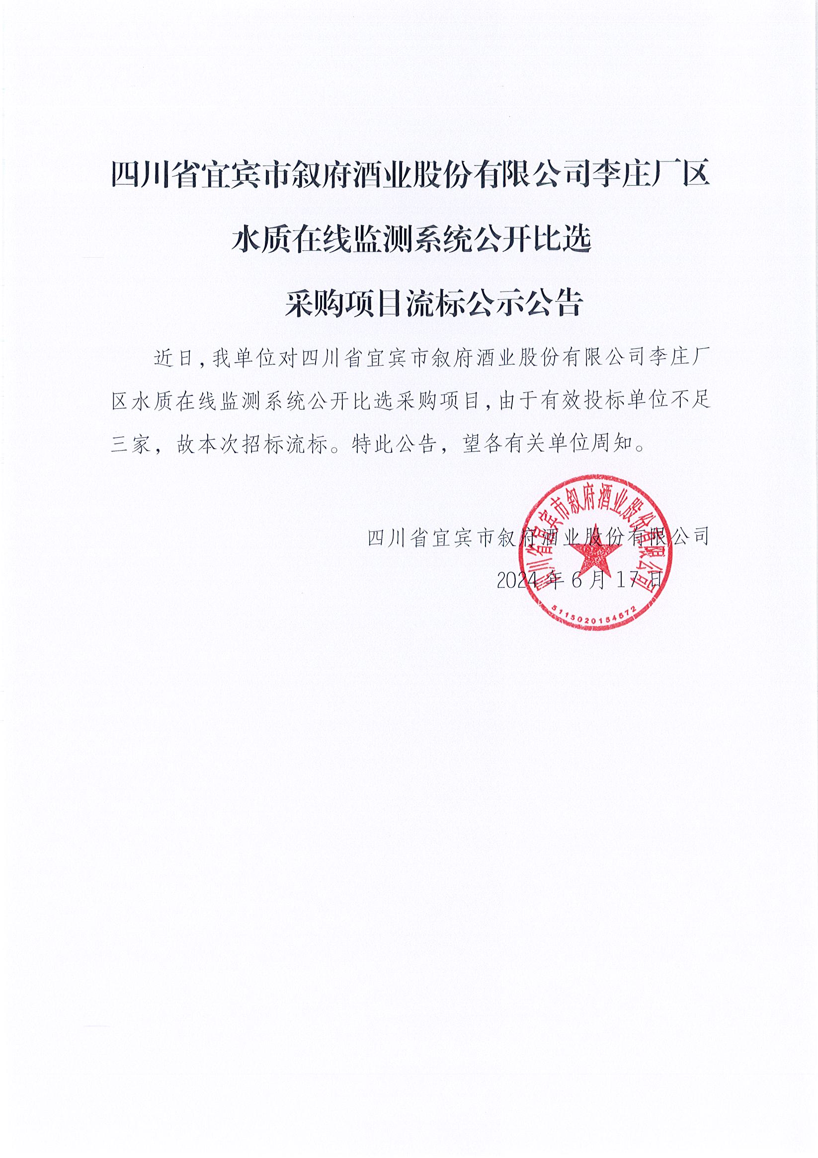 (第二次)李莊廠區(qū)水質(zhì)在線監(jiān)測系統(tǒng)公開比選采購項目公開比選公示公告